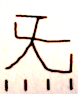 Se queste stesse componenti si assemblano diversamente si ottiene l’ideogramma di cielo, celeste, Tian